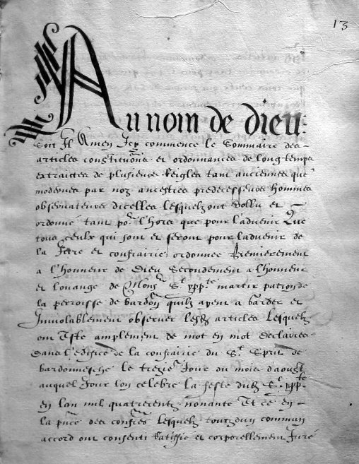 de Bardon(neche) le jour et feste de st ippo(li)te et le jo(ur)